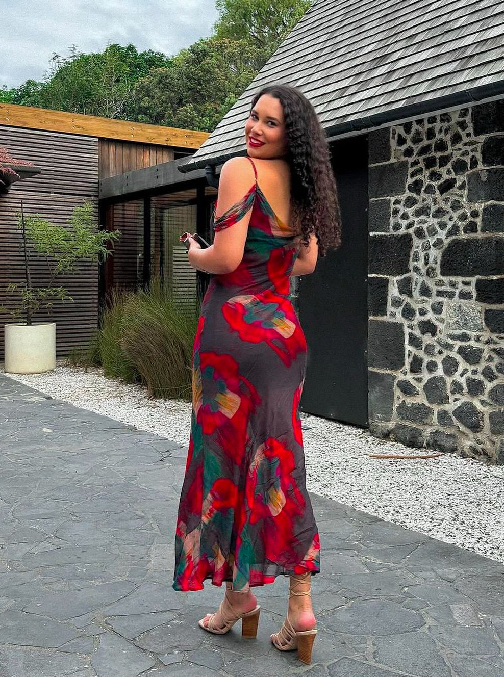 It's time for romance in the Adriana. 90s-inspired slips are a Rat & Boa signature - made for drinks, parties and beyond. The draped shoulder cuffs add a sultry note to this slinky, feminine cut.