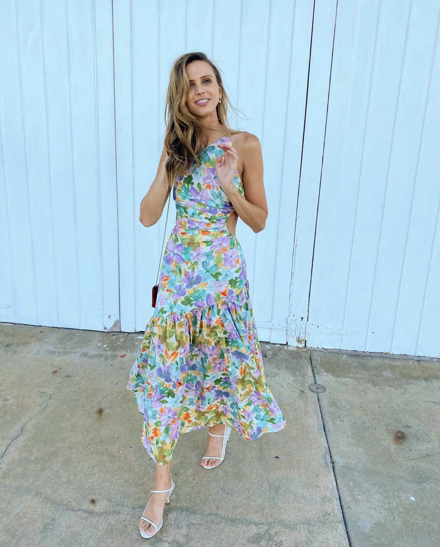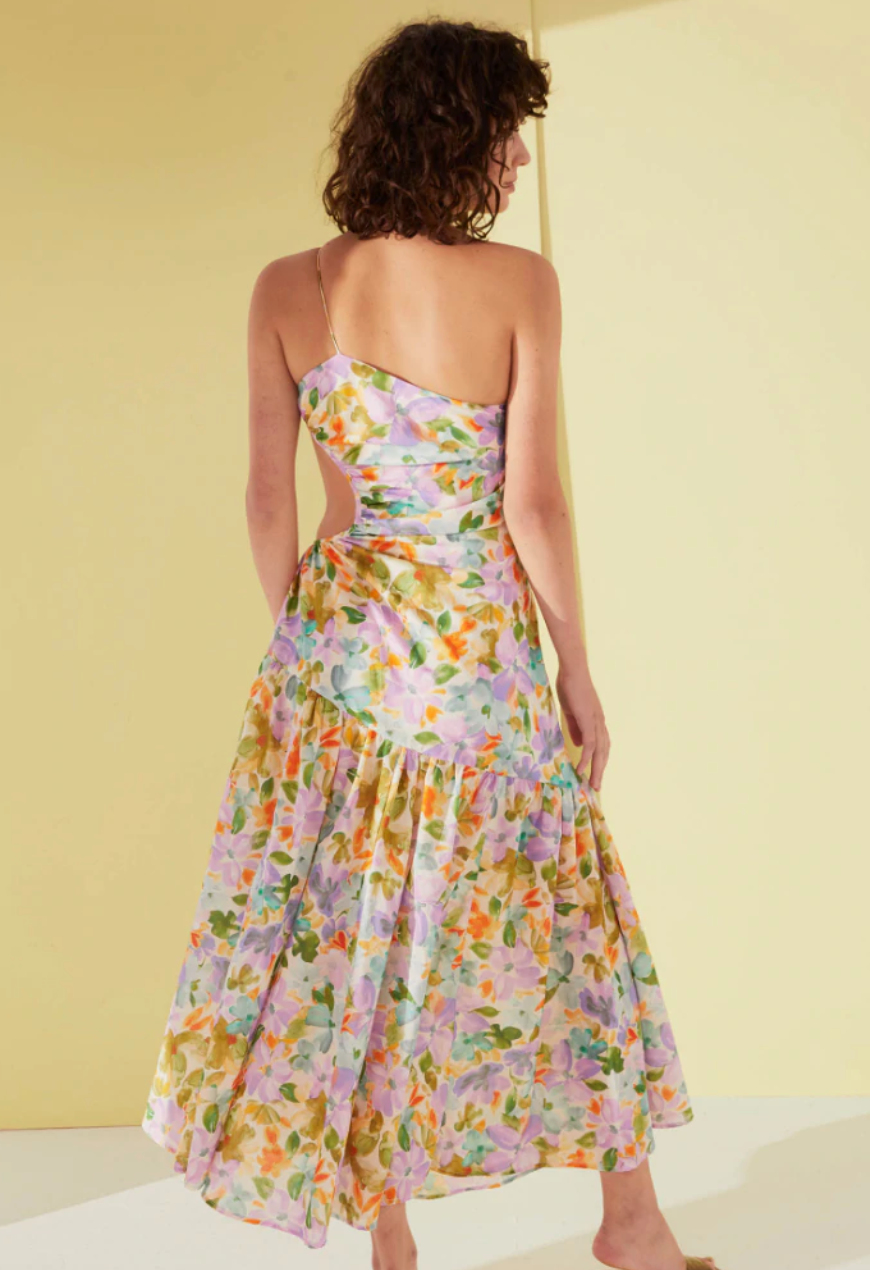 The most beautiful assymetrical midi dress featuring circular cut out at waist in the signature RUBY Bettina floral print.